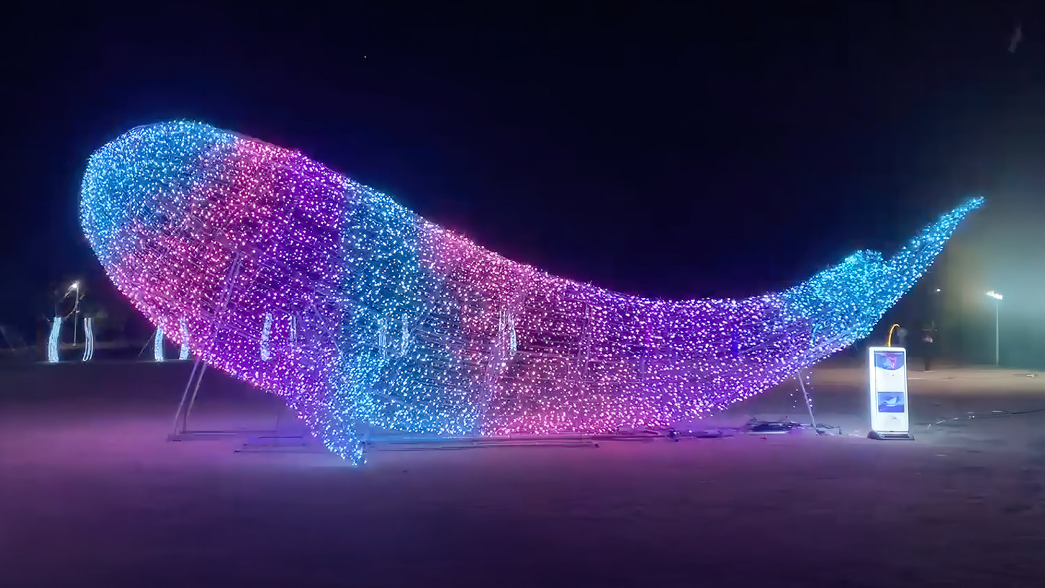 Funktionalität trifft Flexibilität: Intelligente LED-Lichterketten lassen sich problemlos um jede beliebige Form wickeln – von architektonischen Elementen bis hin zu freistehenden Strukturen. Bei der Installation können die Lichterketten frei positioniert werden, und ein Mapping-Prozess verwandelt jede LED in ein Pixel im finalen 3D-Display.
