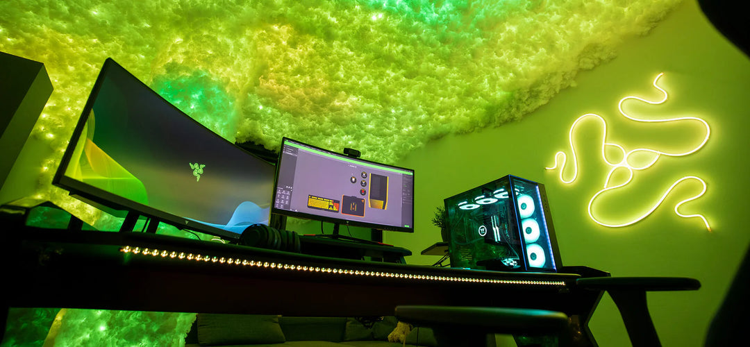 Dank der klangbasierten Beleuchtungseinstellungen reagieren Twinkly-Lichter auf Geräusche von Ihrem Computer und verleihen dem Gameplay so eine sensorische Dimension.