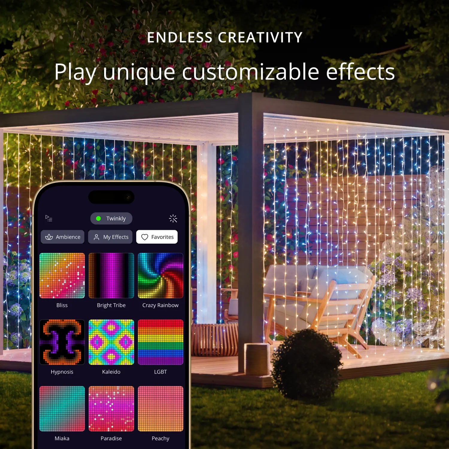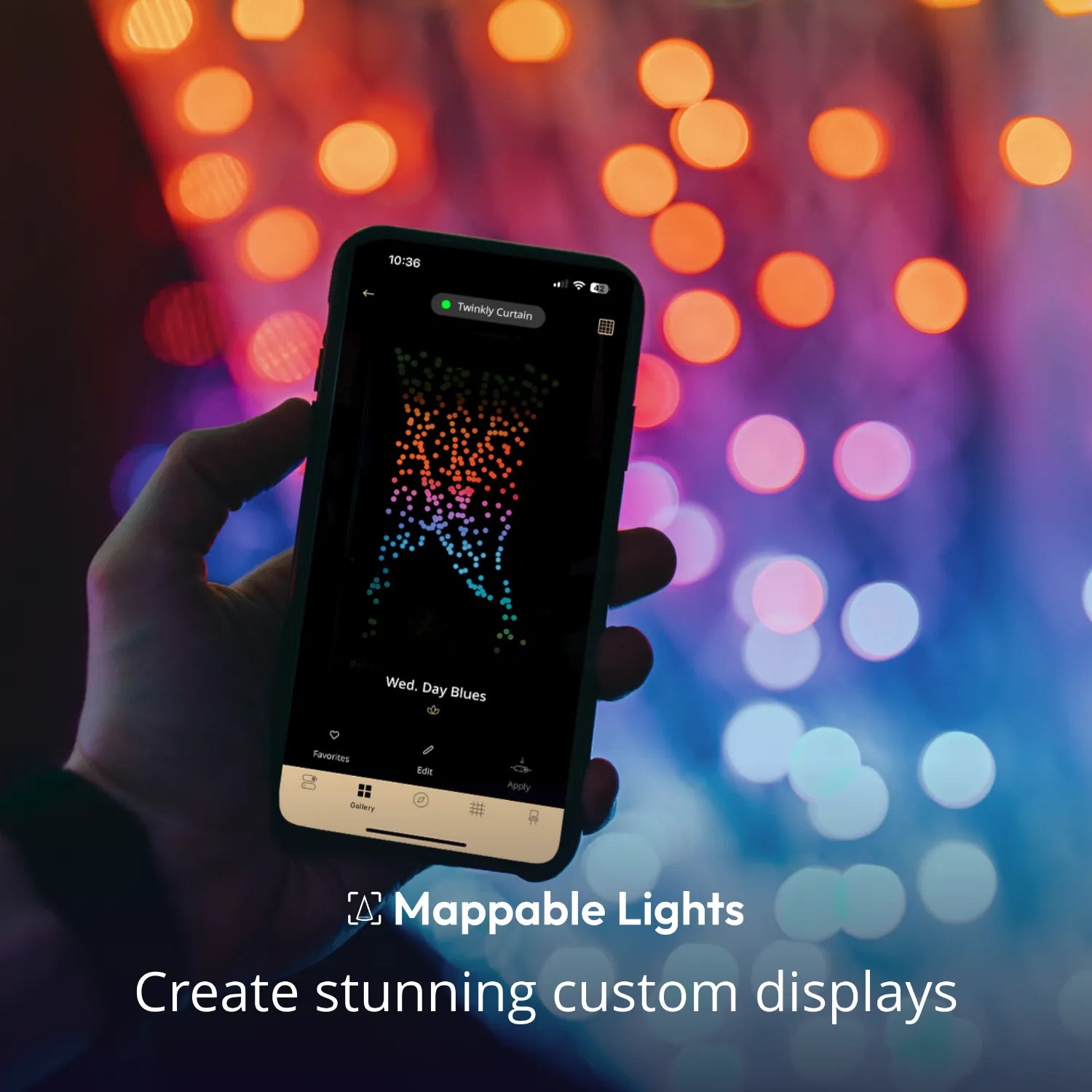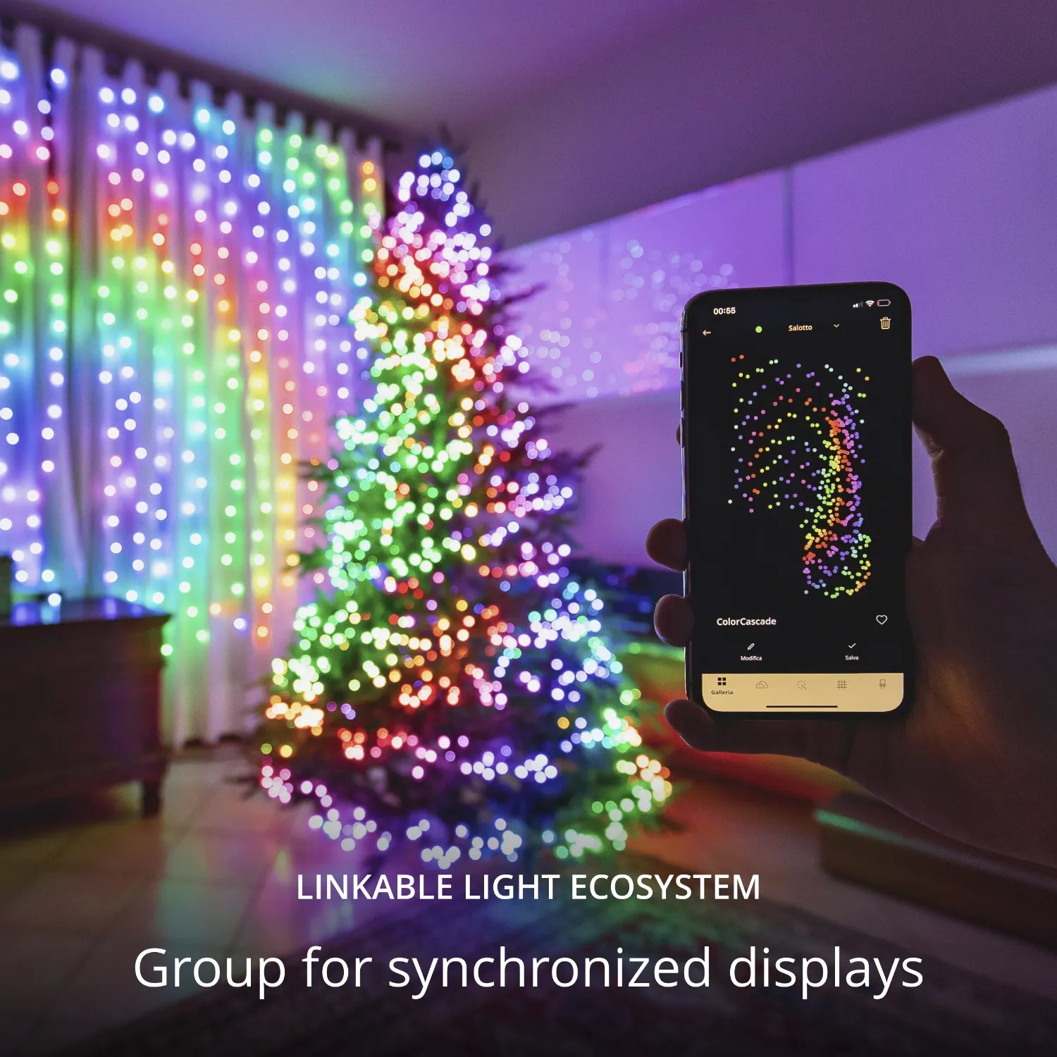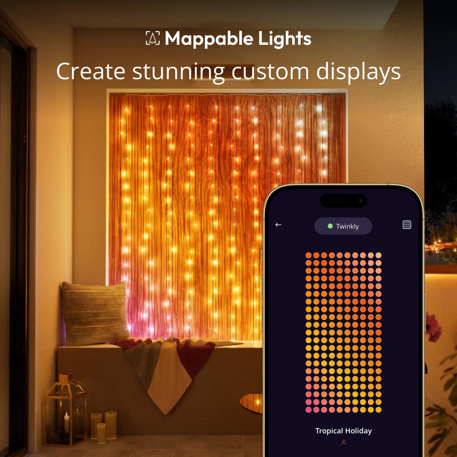 Die patentierte Technologie nutzt die Kamera und App Ihres Smartphones, um die Position jeder LED zu erfassen, unabhängig davon, wo Sie die Lichter aufhängen. Erstellen Sie endlose personalisierte Effekte und kreieren Sie Ihre eigenen mit einer Palette von über 16 Millionen Farben, einschließlich Warmweiß.