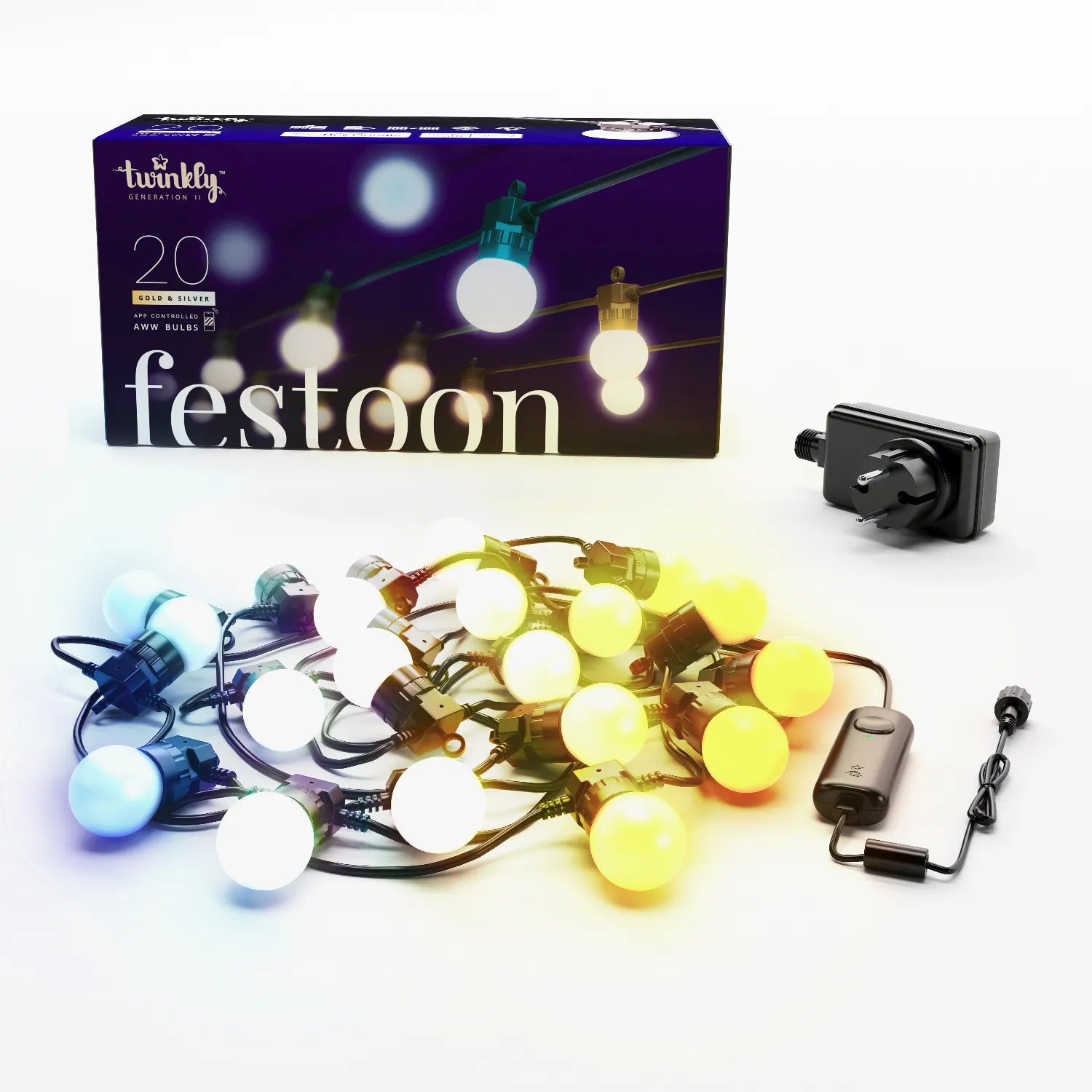Verwandeln Sie Ihren Außenbereich und schaffen Sie mit den Lichterketten Twinkly Festoon eine einzigartige Atmosphäre. Mit einer schillernden Palette aus Gold- und Silbertönen verschönern sie jeden Anlass – von festlichen Abenden bis hin zu ruhigen Nächten unter dem Sternenhimmel.