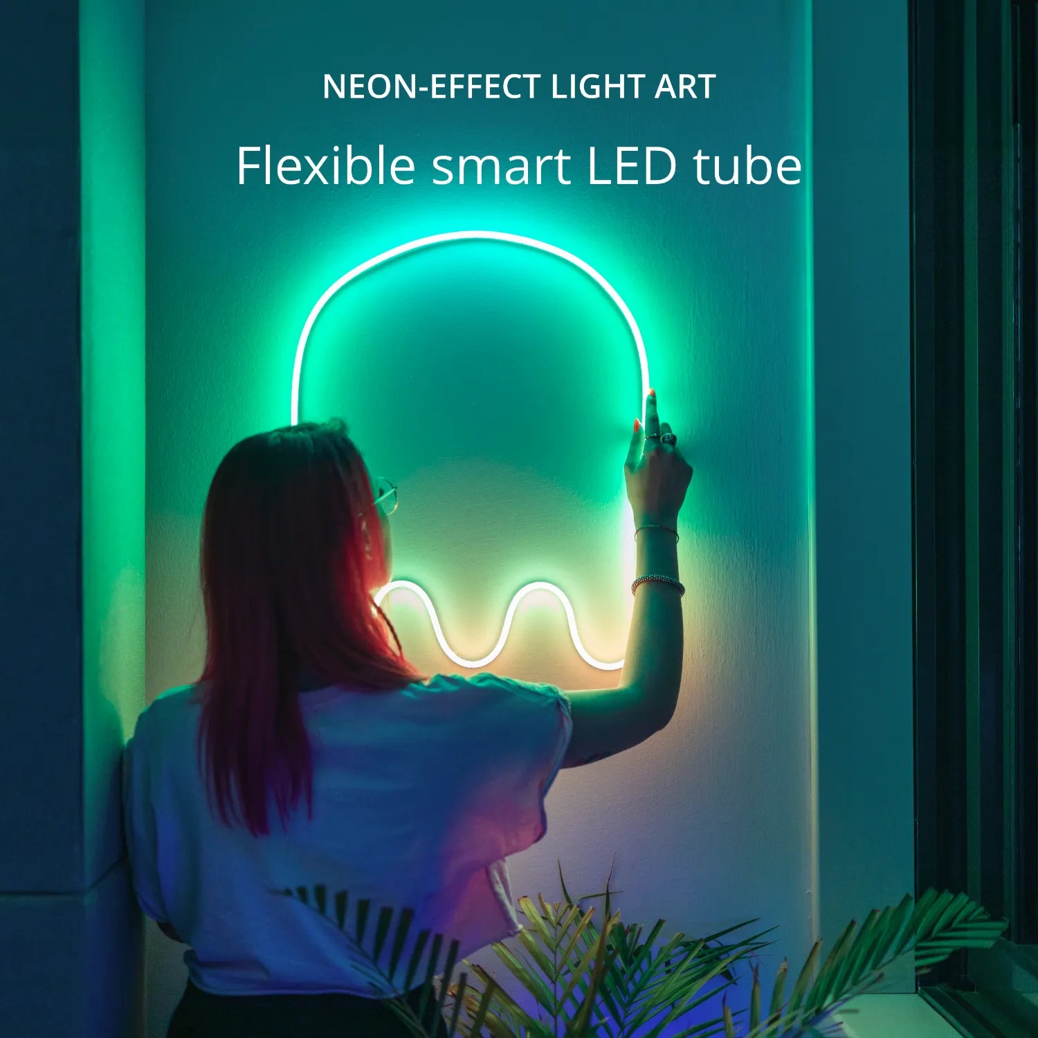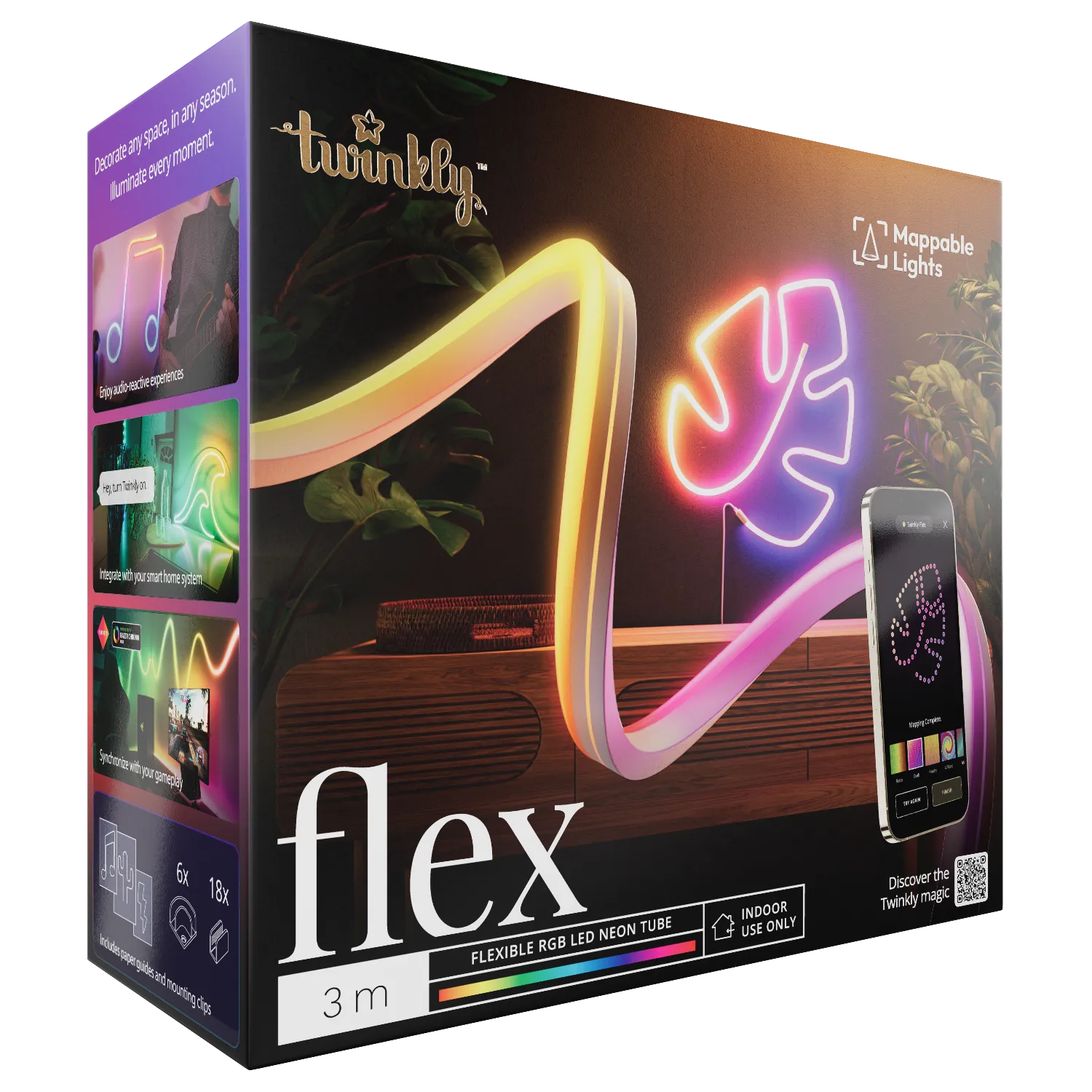 Erleben Sie, wie Licht und Farbe mit dem flexiblen, intelligenten Twinkly Flex LED-Streifen zu Kunst werden. Diese Neon-Effekt-Leuchten lassen sich so formen, dass sie perfekt zu Ihrem Interieur und Stil passen. Das Set enthält ein benutzerfreundliches Montageset und Vorlagen, die Sie bei der Umsetzung Ihres Projekts unterstützen.