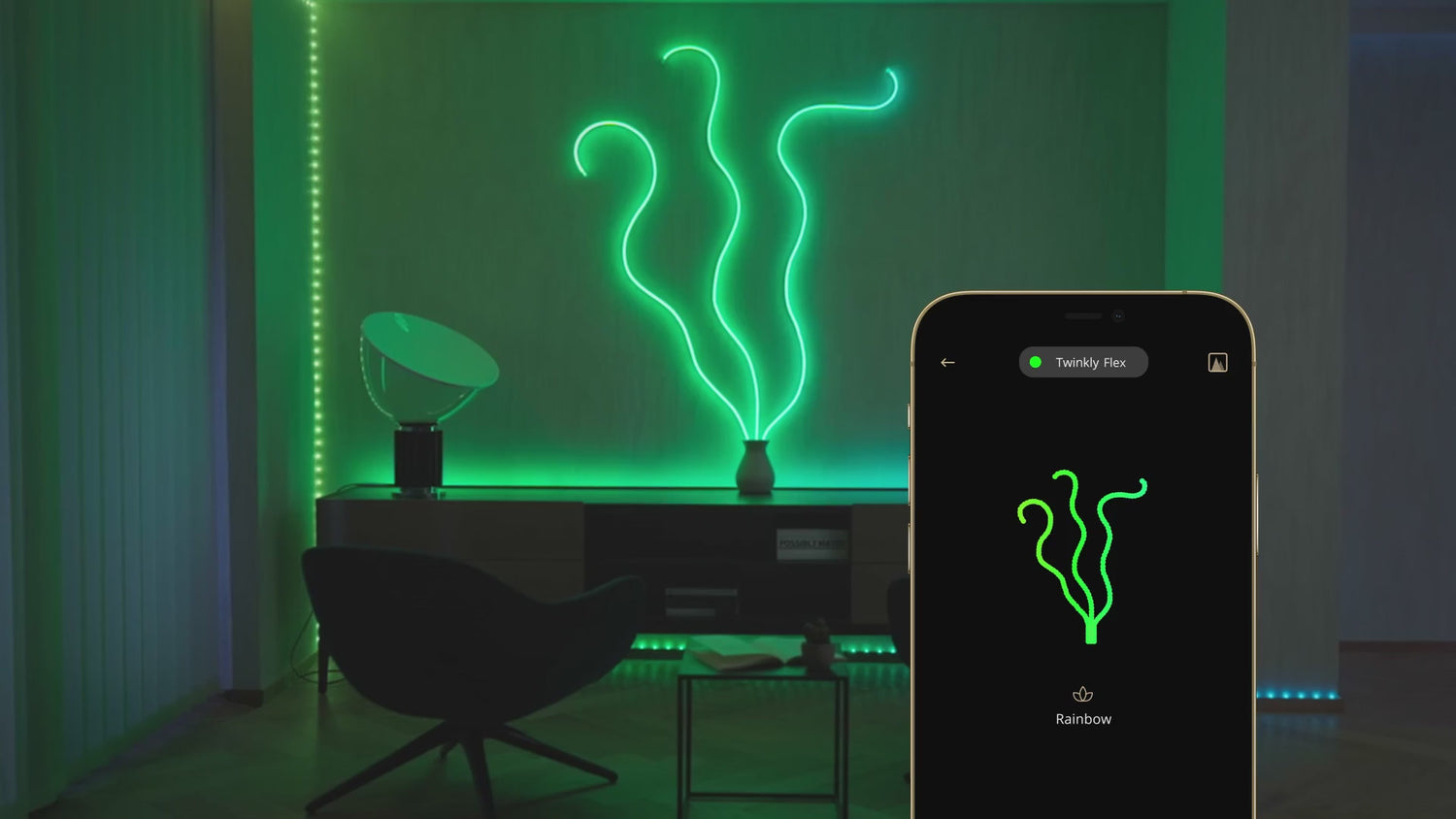 Mit der Twinkly-App und Ihrer Smartphone-Kamera können Sie Ihre Lichter zuordnen und so endlose Möglichkeiten für Farbverläufe, Effekte und Gruppierungen freischalten. Flex kann auch mit anderen Twinkly-Produkten verbunden werden, um aufwendige, synchronisierte Lichtinstallationen zu erstellen.