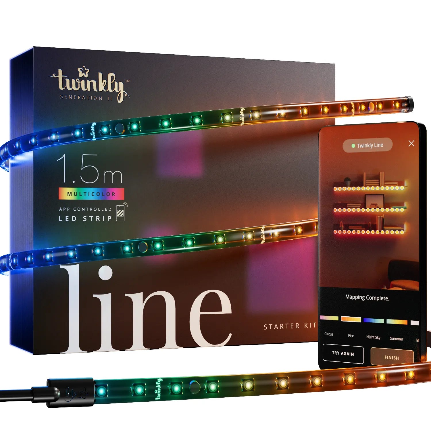 Das Line Starter Kit enthält einen Twinkly-Controller und ein Netzteil. Die Leitungslänge kann durch den Anschluss von bis zu einem Extension Kit verlängert werden.
