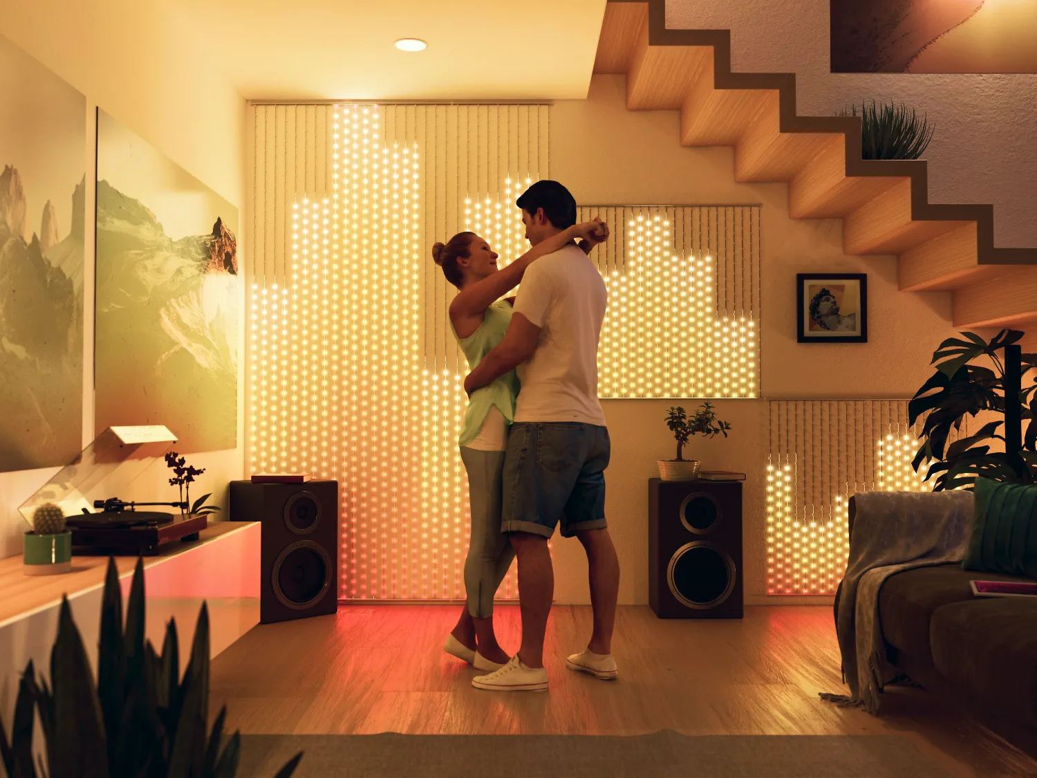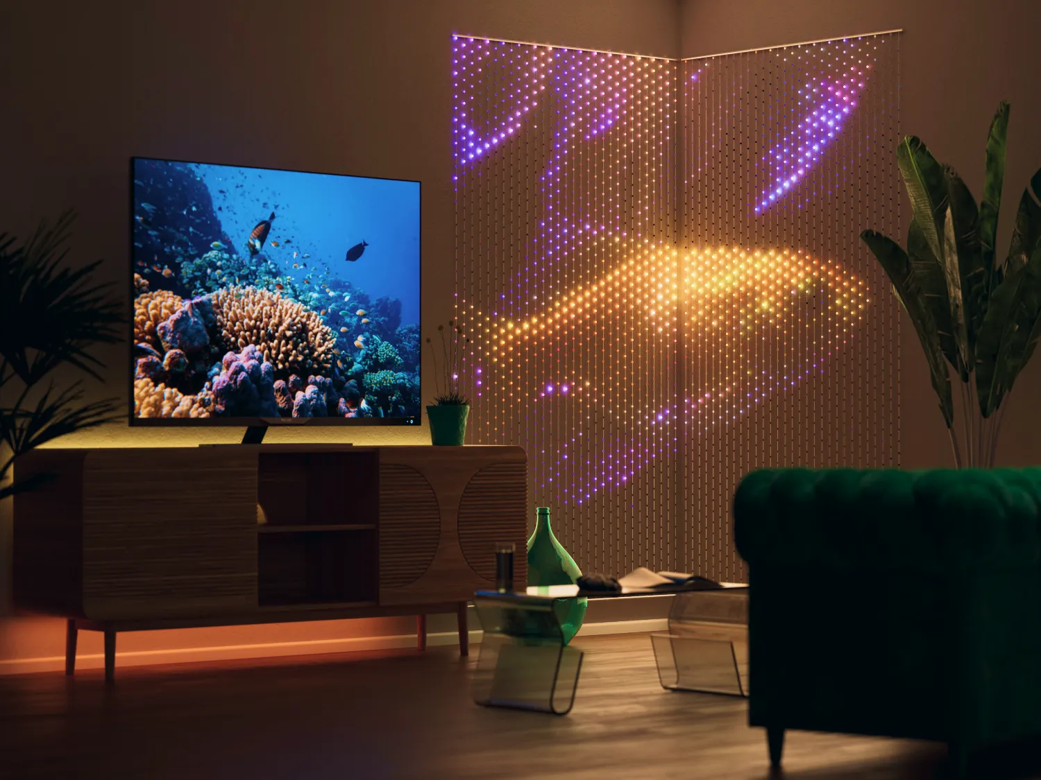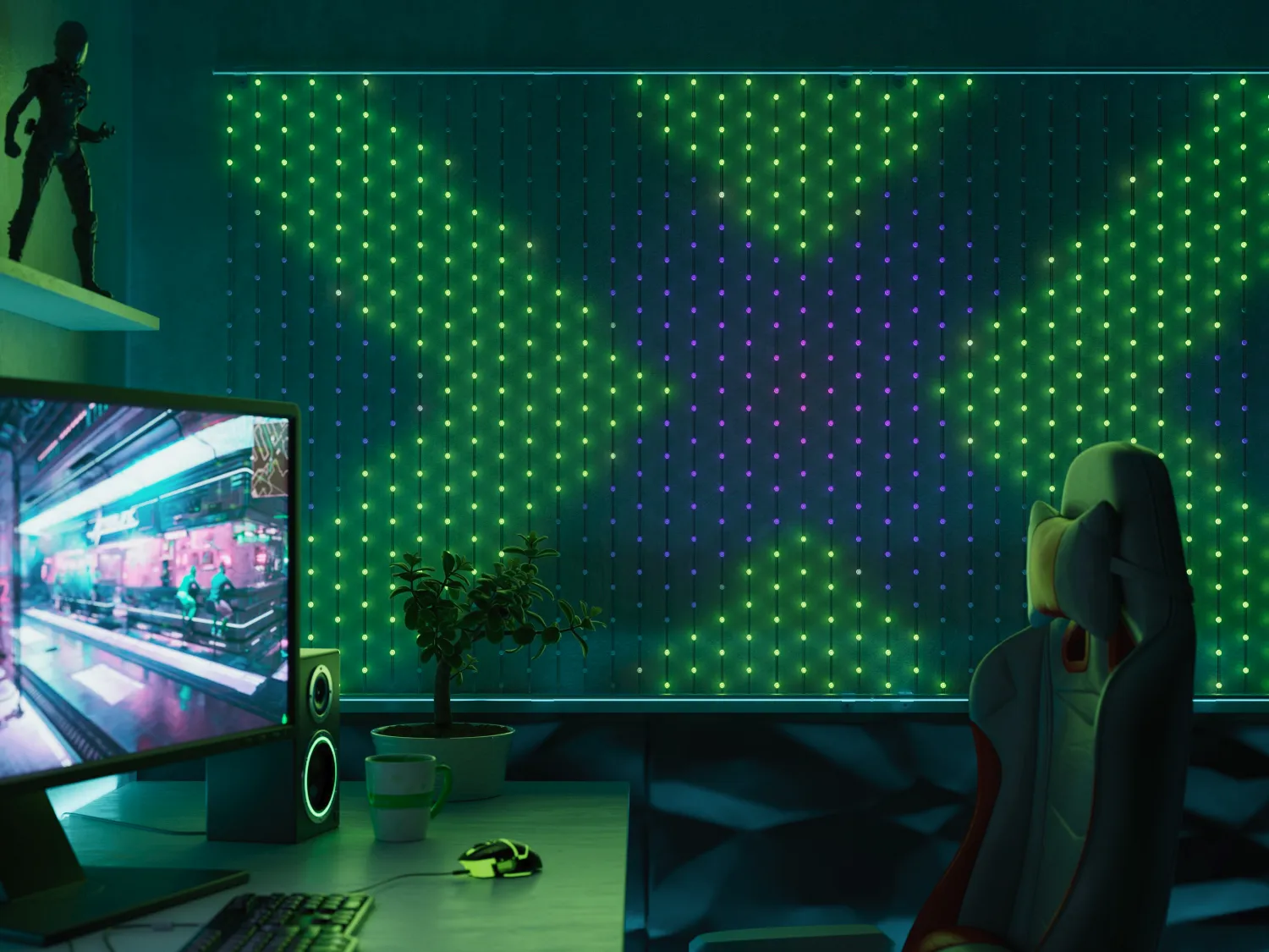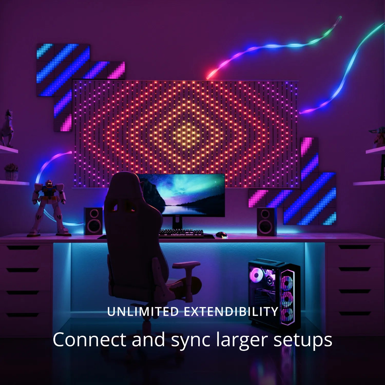 Betreten Sie eine neue Dimension intelligenter LED-Technologie mit dem Matrix-Vorhang. Er bietet die höchste LED-Dichte seiner Klasse und präzise LED-Platzierung für nahtlose visuelle Effekte. Dank seines sofort einsatzbereiten Designs und des leichten, hochwertigen Designs fügt er sich nahtlos in jede Umgebung ein. Matrix ist app-gesteuert und vollständig anpassbar, mit unbegrenzten Effekten und Animationen. Bildschirmspiegelungsoptionen (Windows und Mac) und Gaming-Integrationen sorgen für ein beeindruckendes Live-Erlebnis.