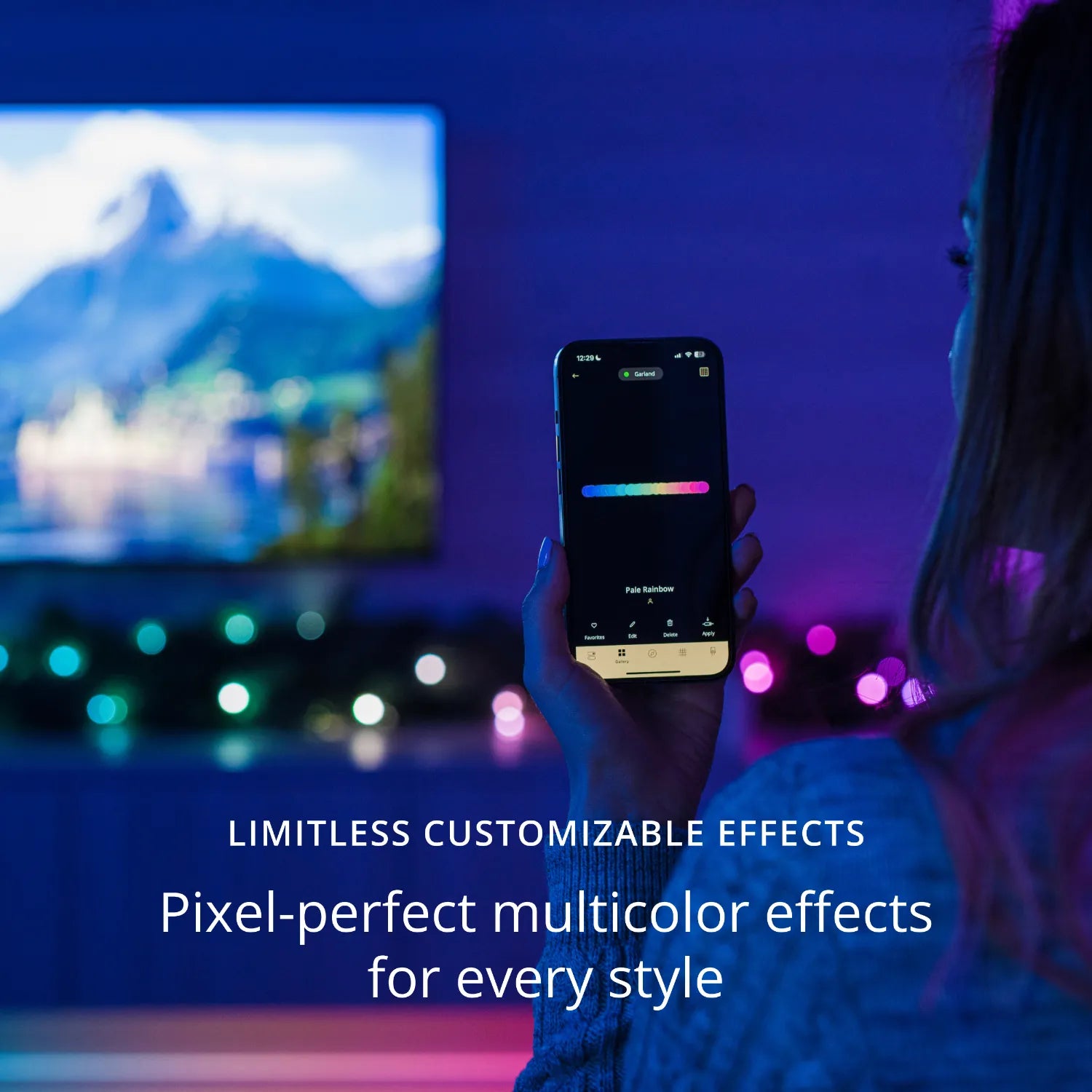 Sie können auch Ihre eigenen Effekte erstellen, um sie perfekt an Ihre Weihnachtsdekoration anzupassen. Nur für den Innenbereich.
