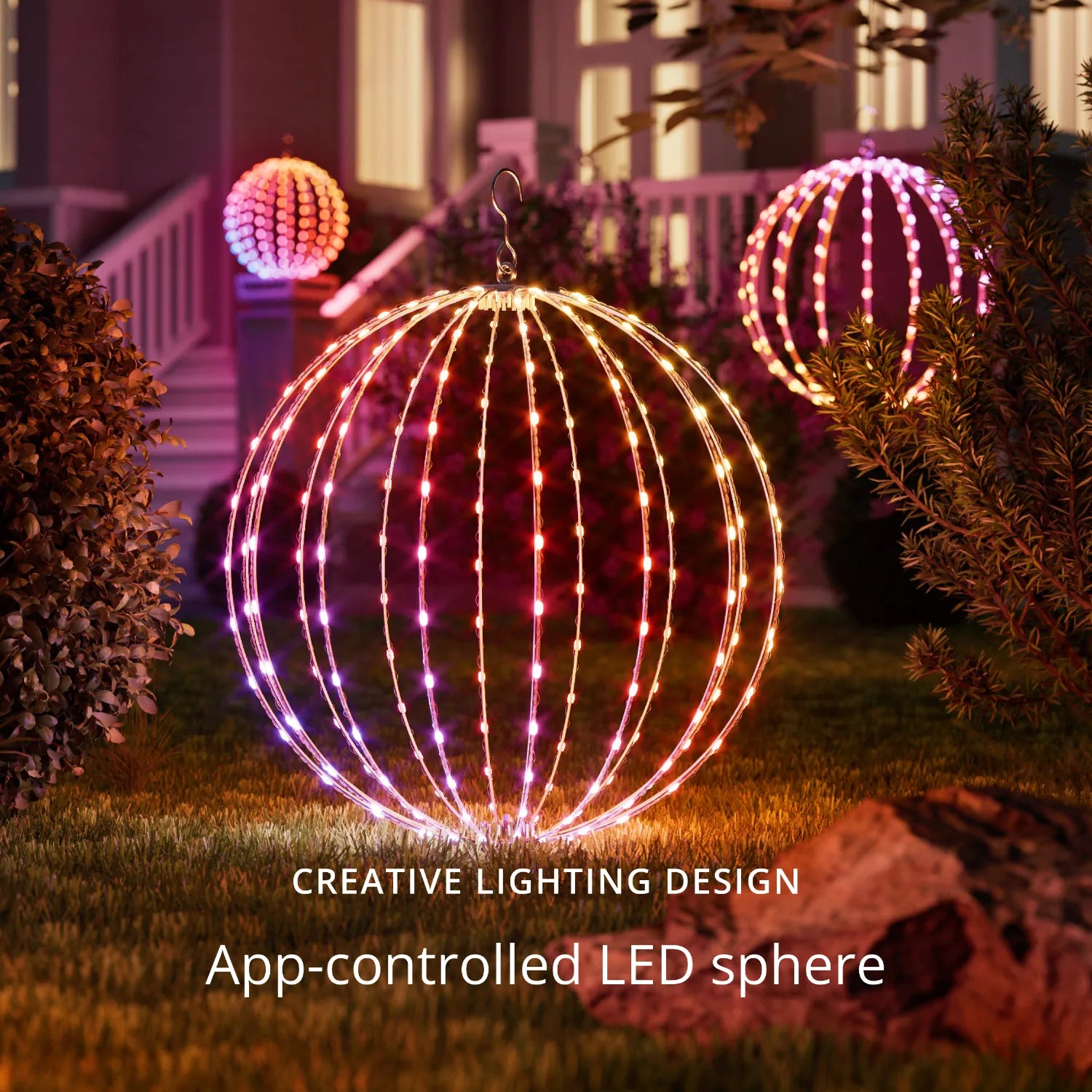 Tauchen Sie mit der Twinkly 3D Sphere in die Magie animierten Lichts ein. Diese Kugel mit 43 cm Durchmesser besteht aus 200 LEDs , die eine breite Palette an RGB-Farben erzeugen können. Perfekt für die Dekoration von Innenräumen, Gärten oder Terrassen, vereint sie moderne Technologie mit elegantem Design.