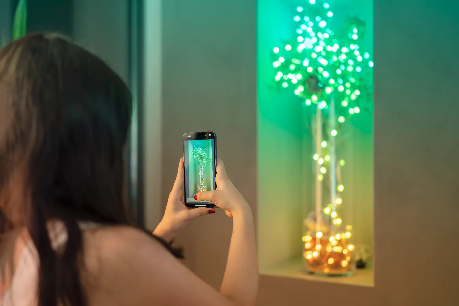 Verbinden Sie Ihre Lichter virtuell mit anderen Twinkly-Lichtern und ordnen Sie sie allen zu, um größere, synchronisierte Lichtspiele zu erstellen. Verwenden Sie Twinkly Music, um die Lichter in Echtzeit zu Ihren Lieblingsliedern tanzen zu sehen.
