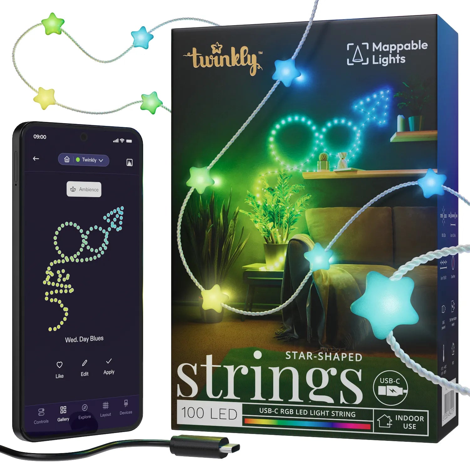 Verbinden Sie Ihre Lichter virtuell mit anderen Twinkly-Lichtern und ordnen Sie sie allen zu, um größere, synchronisierte Lichtspiele zu erstellen. Verwenden Sie Twinkly Music, um die Lichter in Echtzeit zu Ihren Lieblingsliedern tanzen zu sehen.