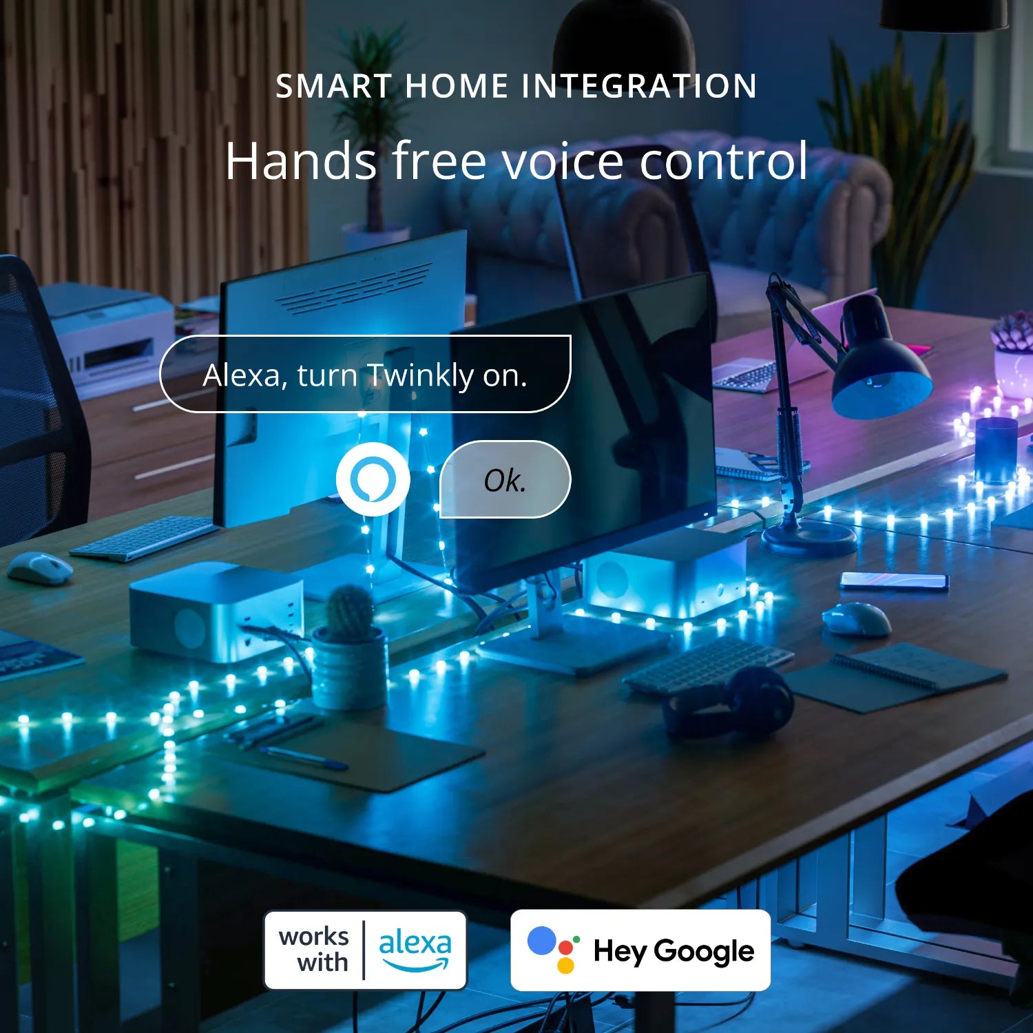 Sie lassen sich nahtlos mit anderen Twinkly-Geräten synchronisieren und sorgen so für eine nahtlose Lichtshow. Netzteil nicht im Lieferumfang enthalten.